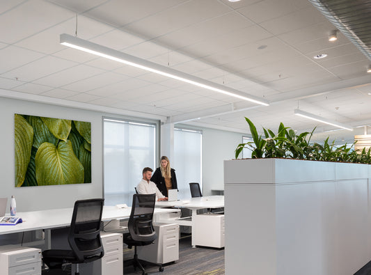 Enhance workspaces with focused lighting, guide movement along walking areas, and personalise zones with various colour finishes.